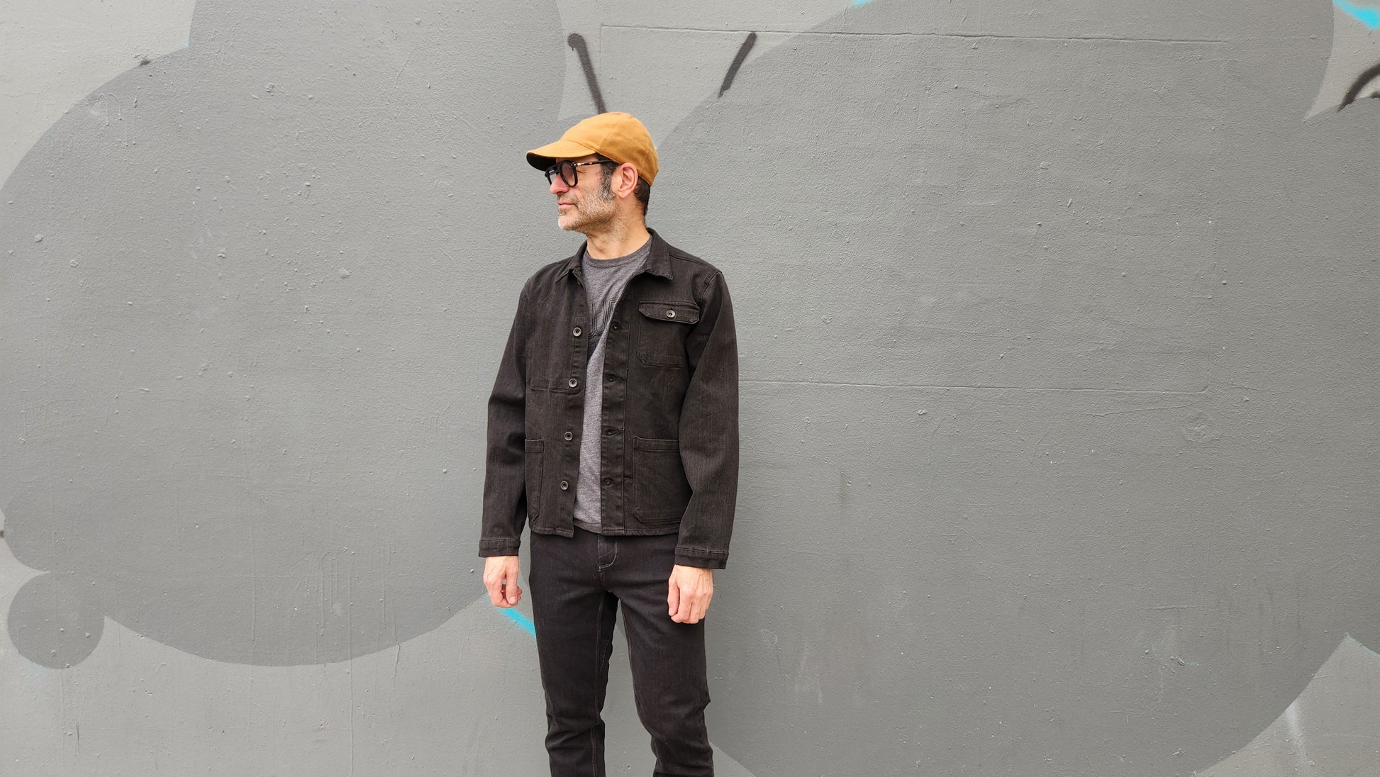 We also offer these jackets in black denim, which means it has contrasting warp and weft. To offer a darker black, we overdyed these jackets at a local dye house right here in LA to produce a deeper, darker black.